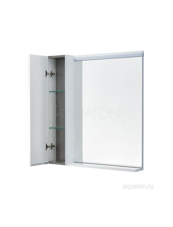 Зеркальный шкаф Рене 80 от AQUATON в комбинированной отделке - это модное сочетание белого глянца и эффектных деталей в отделке "грецкий орех". Строгий элегантный дизайн, подчеркнутый отсутствием лицевой фурнитуры, поможет создать в ванной комнате атмосферу сдержанной современной роскоши. Корпус и зеркальный фасад изготовлены из влагостойкой ЛДСП и покрыты полиэфирной краской ультрафиолетового отверждения, которая обеспечивает защиту от влаги и дополнительную прочность. Задняя, верхняя и нижняя стенки шкафчика, которые видны при открывании, выполнены в контрастной тёмной отделке под дерево. Модель оснащена нижней полкой и светодиодной подсветкой. Плавное закрывание дверцы обеспечивают надежные петли с доводчиком. Зеркальный шкаф идеально подходит к тумбе под раковину AQUATON Рене 80.