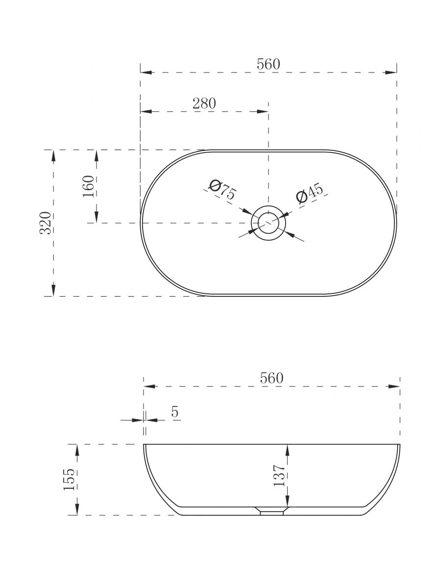 Накладная раковина Размер: 56x32x15.5 см Цвет: белый матовый Материал: искусственный камень
