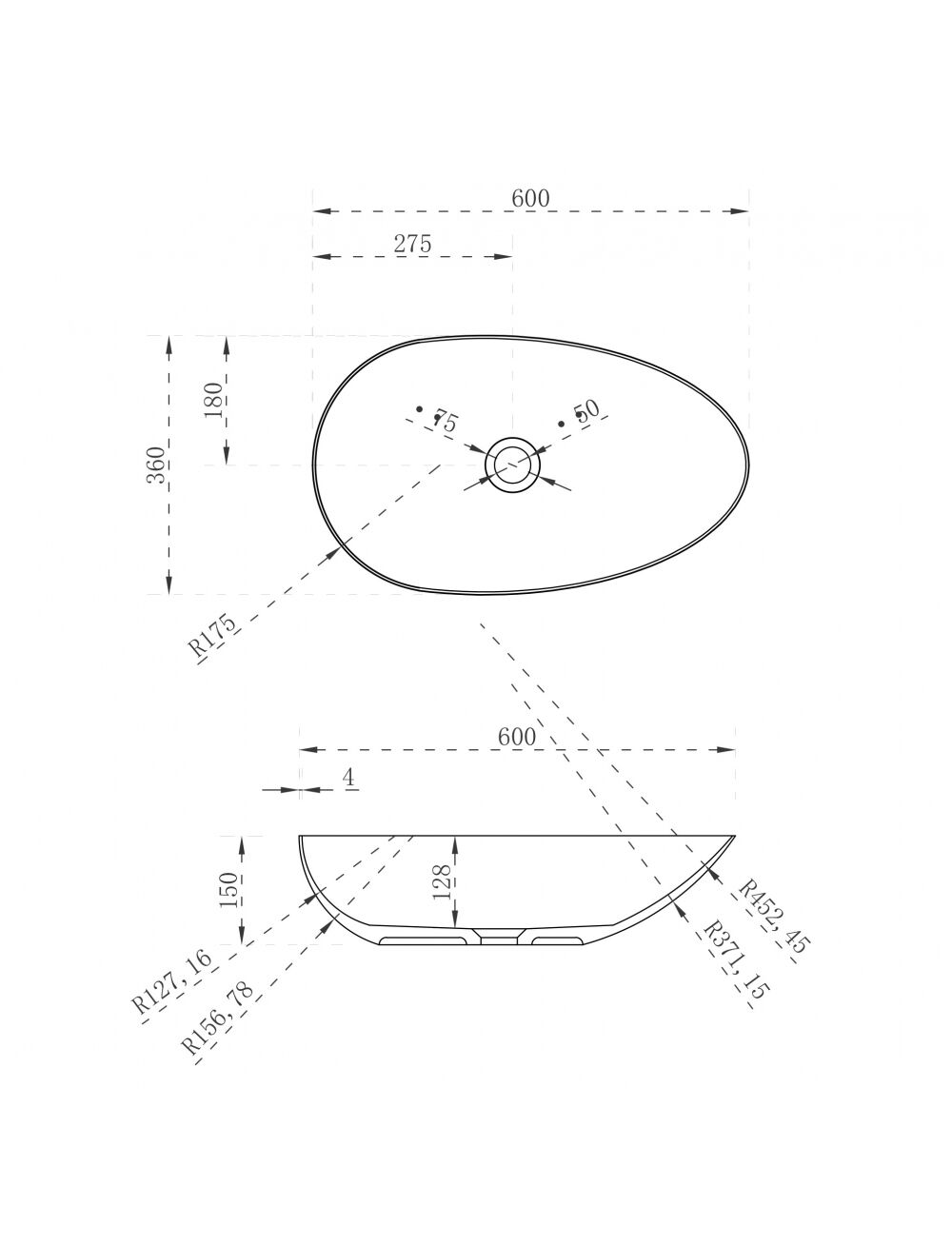 Накладная раковина Размер: 60x36x15 см Цвет: белый матовый Материал: искусственный камень