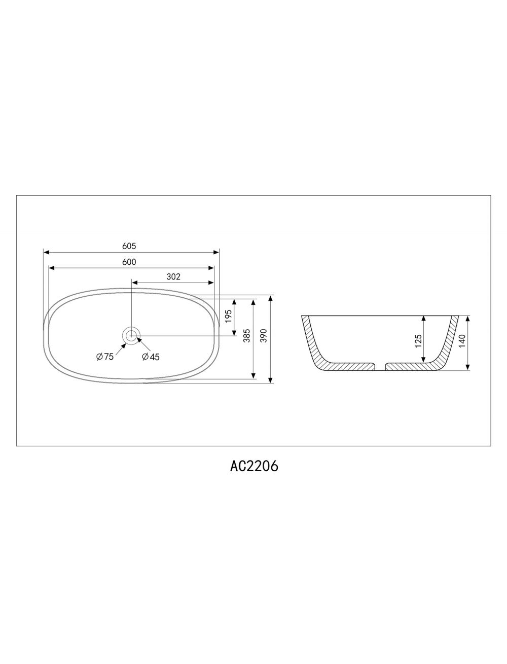 Раковина накладная ABBER Rechteck AC2206MG серая матовая