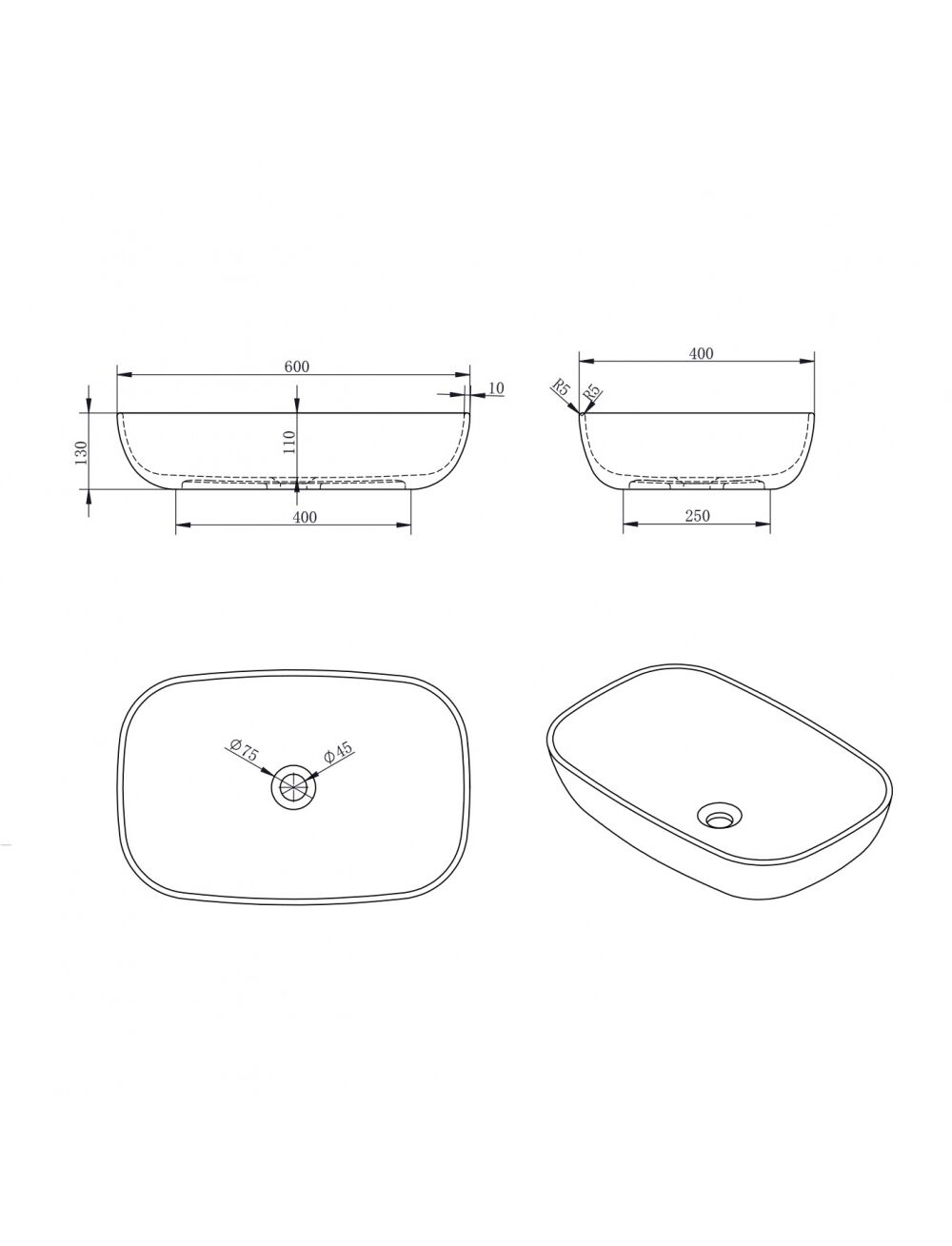 Раковина накладная ABBER Stein AS2620 белая матовая