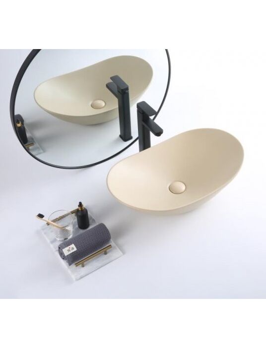 Раковина накладная керамическая, бежевая матовая, BB1404-H316, 605x370x150