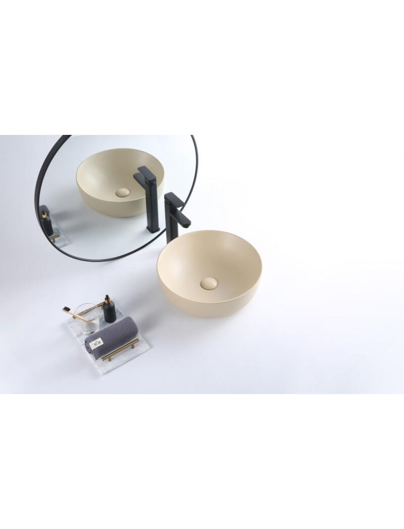 Раковина накладная керамическая, круглая, бежевая матовая, BB1315-H316, 410x410x130