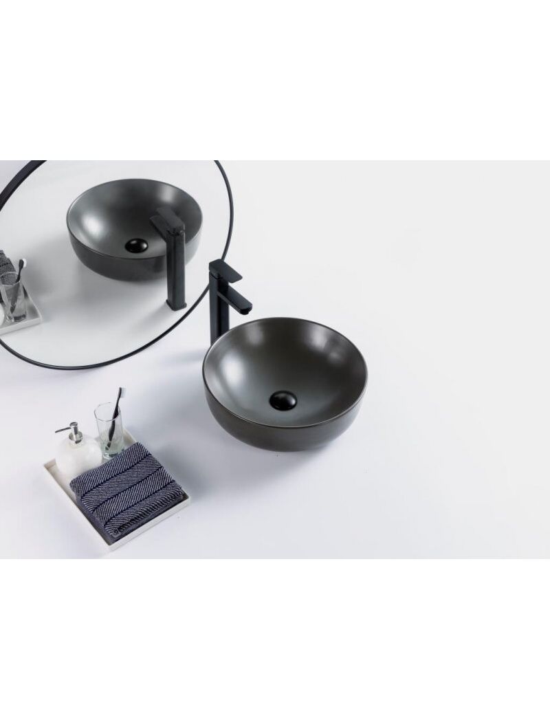 Раковина накладная керамическая, круглая, серая матовая, BB1315-H311, 410x410x130