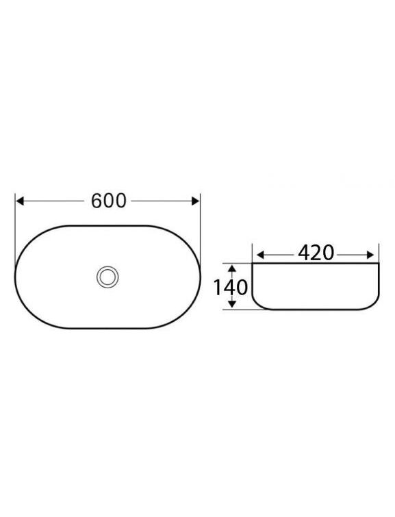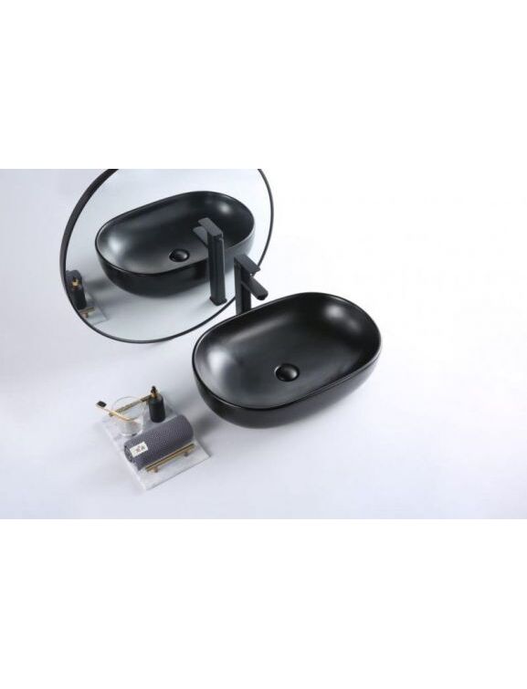 Раковина накладная керамическая, овальная, чёрная матовая, BB1084-H301, 600x420x140