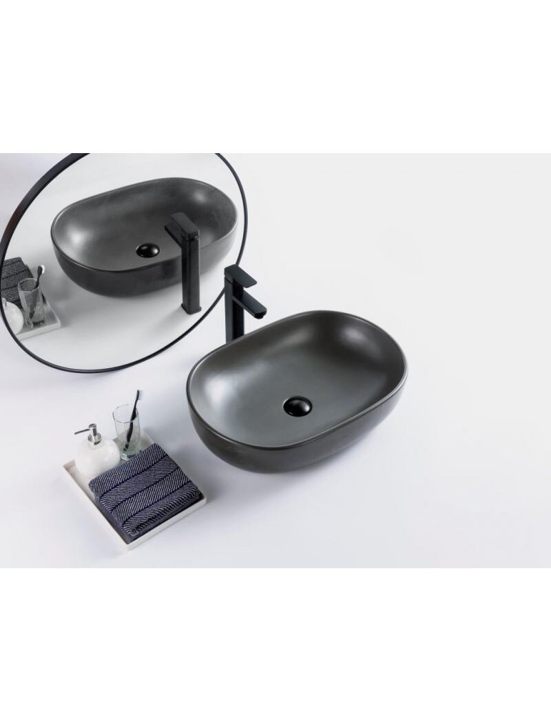 Раковина накладная керамическая, овальная, серая матовая, BB1084-H311, 600x420x140