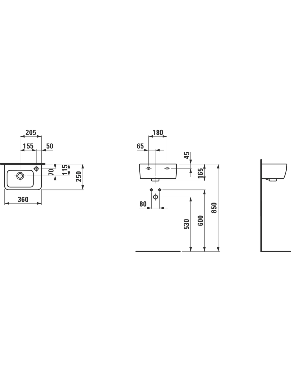 - Отверстия под смеситель: с 1 отверстием для смесителя справа