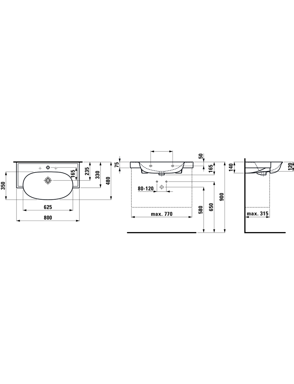Раковина сложной формы Laufen The New Classic 800x480x75 8.1385.5.400.104.1