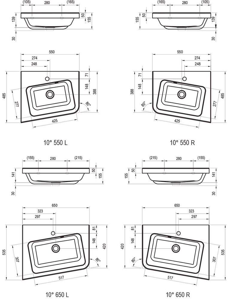 Угловой умывальник Ravak 10° 550 правый XJIP1155000