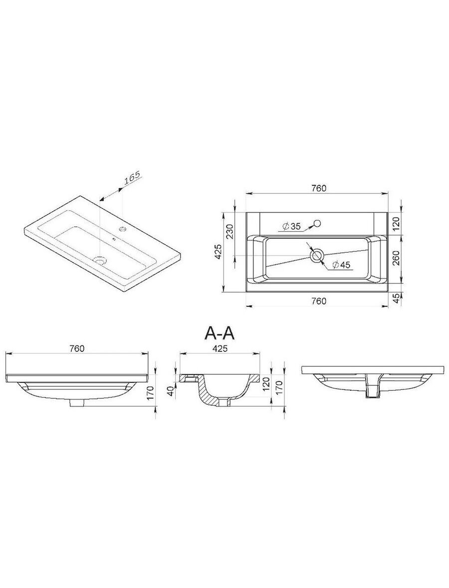M90WCC0752BM GEM, Раковина мебельная, керамическая, 75 см, встроенная, цвет: черный матовый