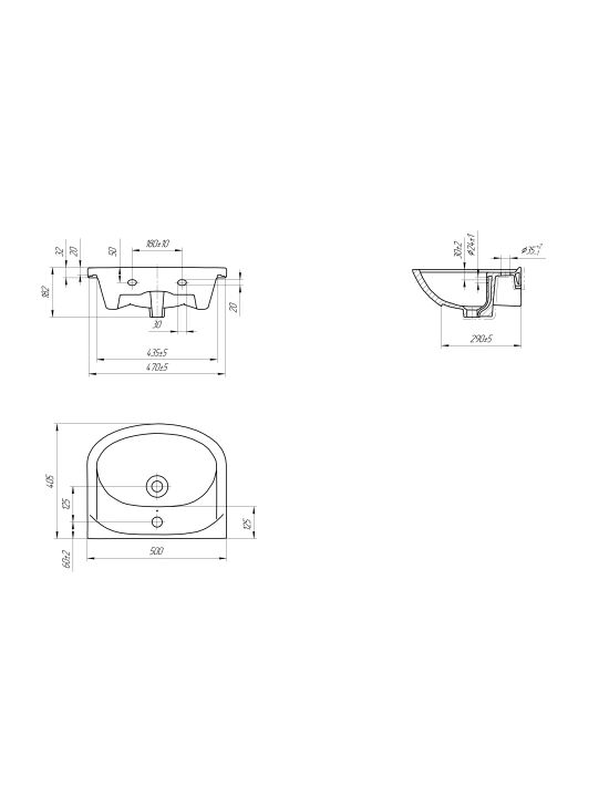 Мебельная раковина ERICA с отверстием под смеситель, размером 50 см.