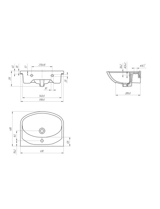 Мебельная раковина ERICA с отверстием под смеситель, размером 61 см.