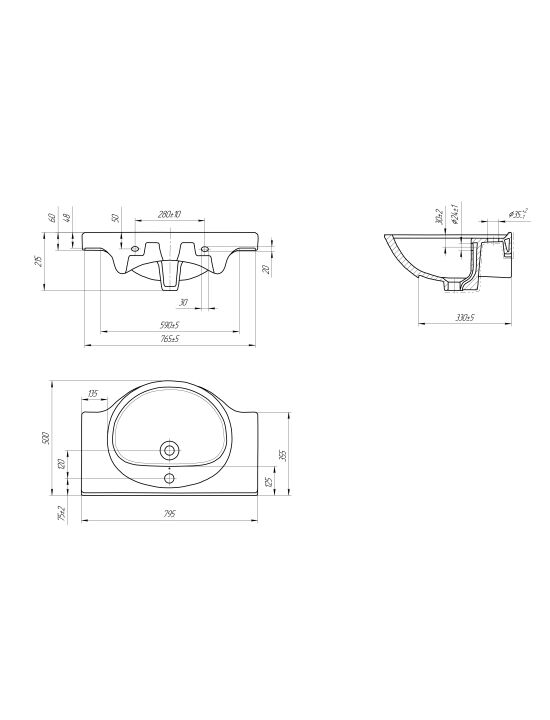 Мебельная раковина ERICA с отверстием под смеситель, размером 80 см.