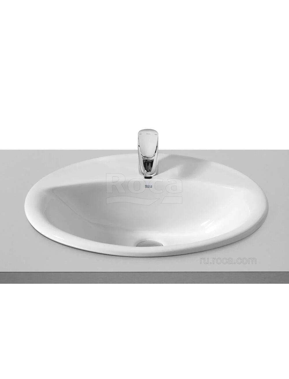Встраиваемая сверху раковина с отверстием под перелив с противоположной стороны от смесителя.