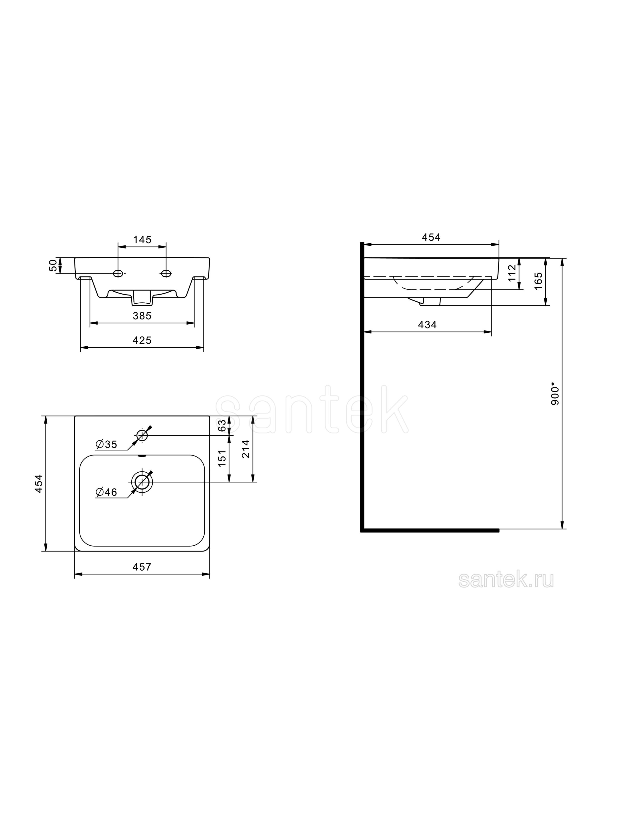 Раковина Santek Адриана 45 отверстие под смеситель 1WH501630