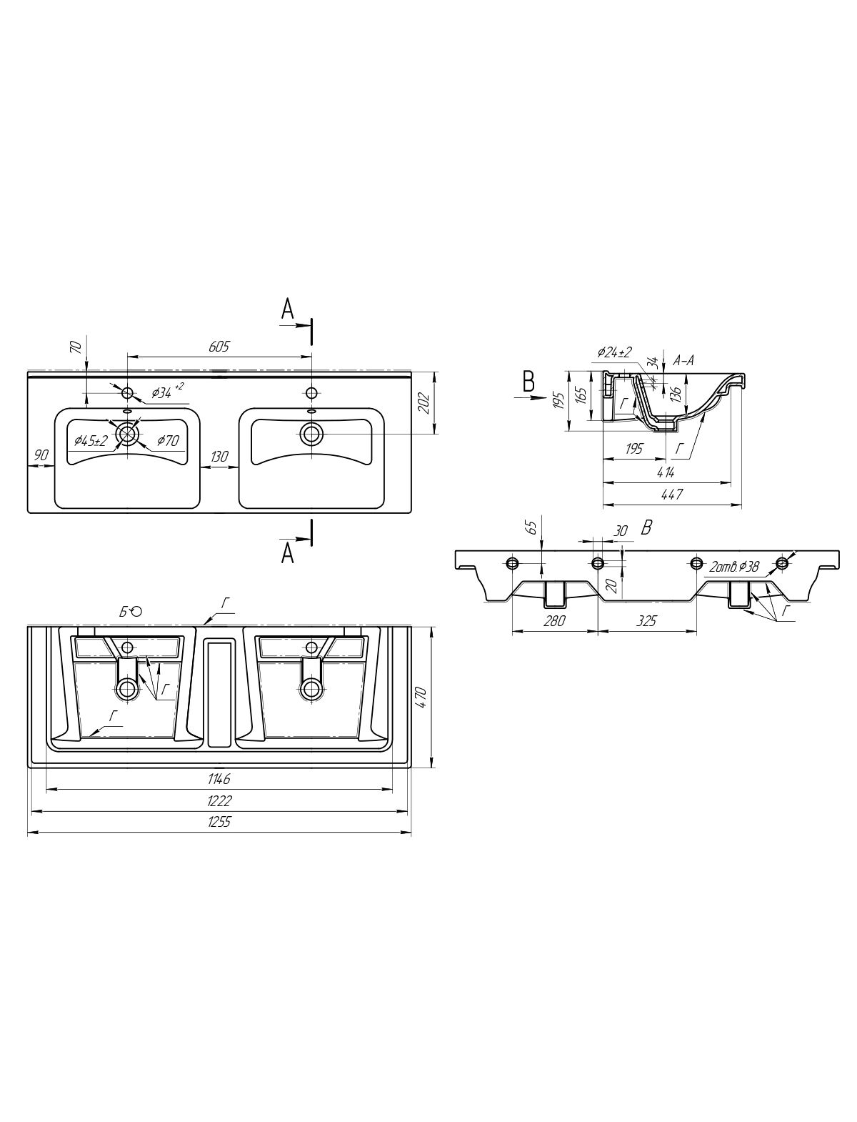 Раковина сдвоенная Lemark Гармония 641938 125 см, цвет белый