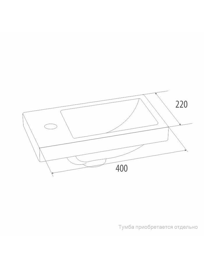 Умывальник мебельный. Материал: фаянс. Размеры: 220х400 мм (ДхШ). Подходит к тумбам Torr 40, Amur 40.