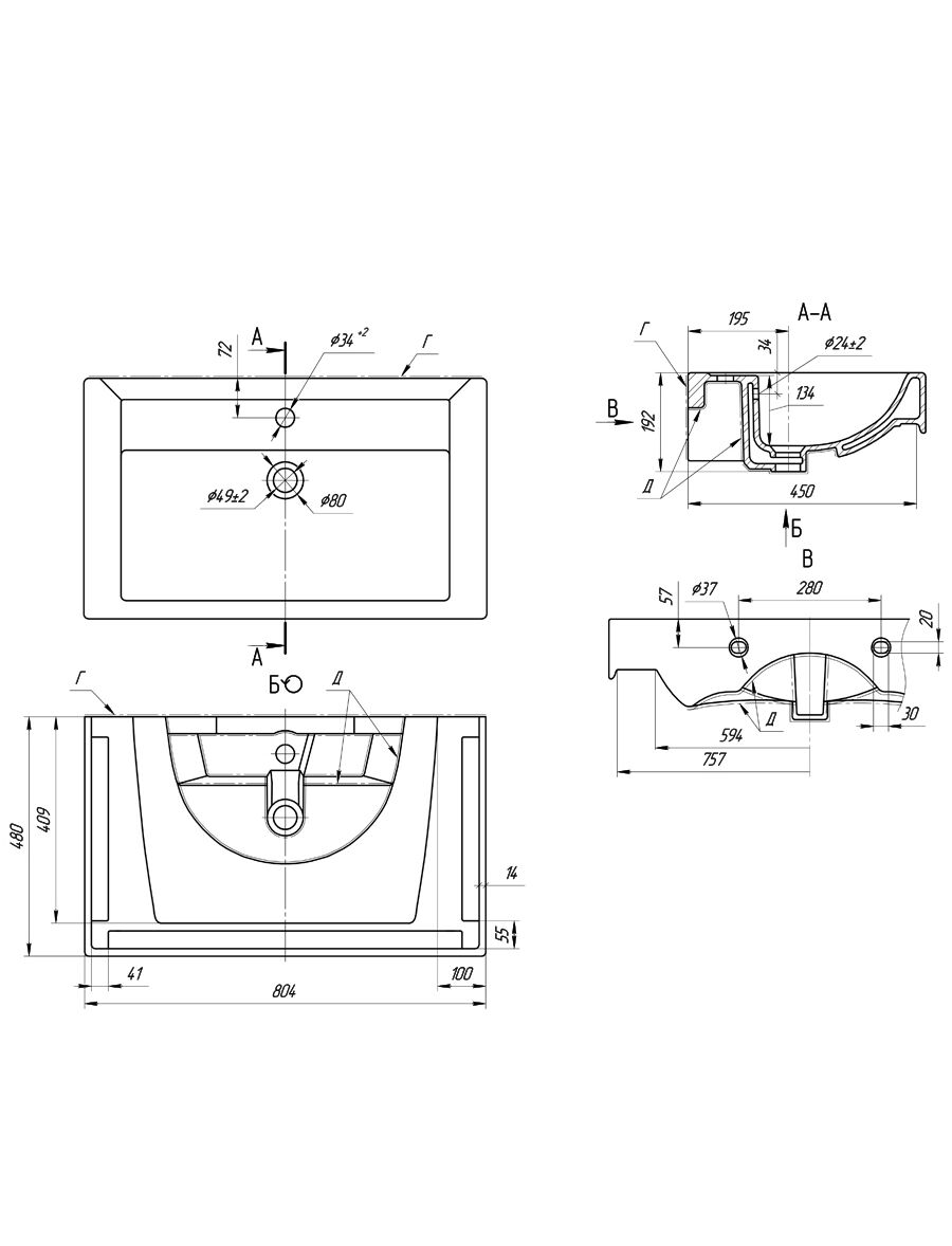 Умывальник мебельный Дрея Q-80 (для Valencia, Nyborg)