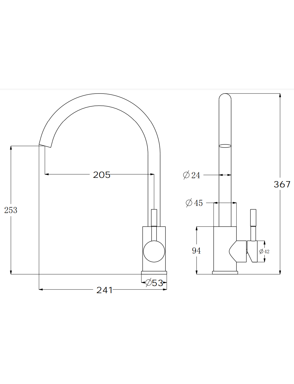 Смеситель д/кухни, R-излив, White, арт. K45 White