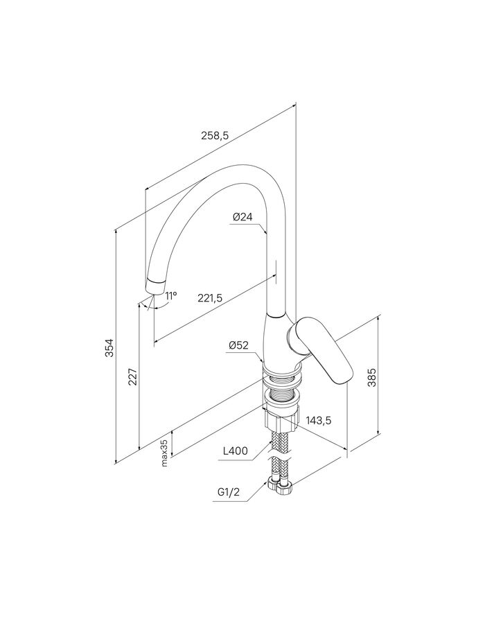 Длина излива мм: