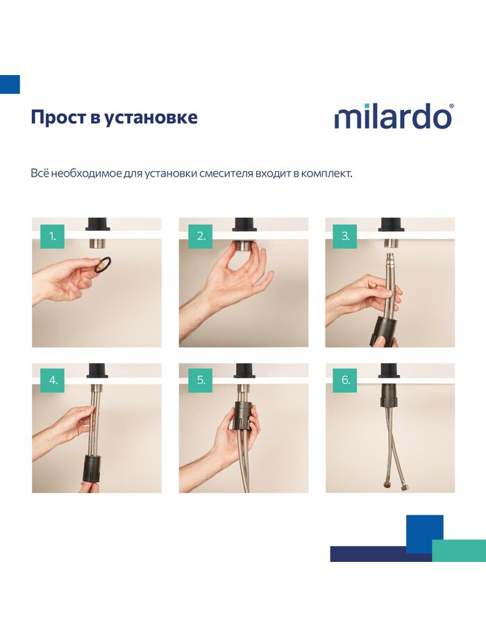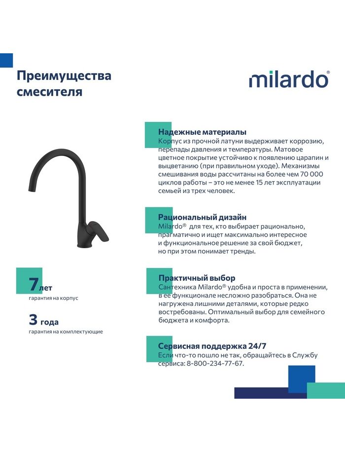 Смеситель для кухни, черный матовый, Rora, Milardo, RORBL0JM05