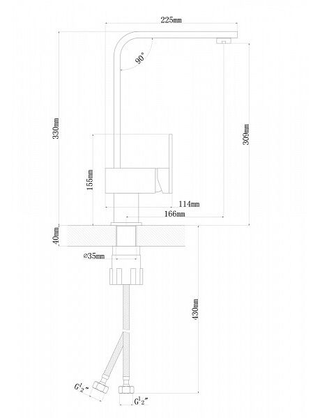 Длина излива мм: