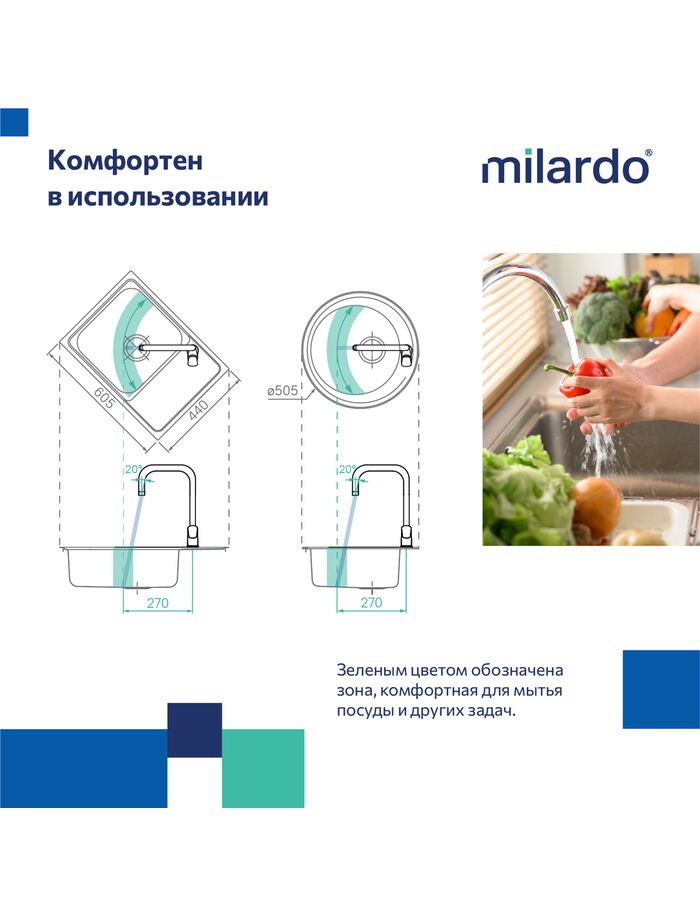 Смеситель для кухни, глянцевый хром, Poli, Milardo, POLSBL0M05