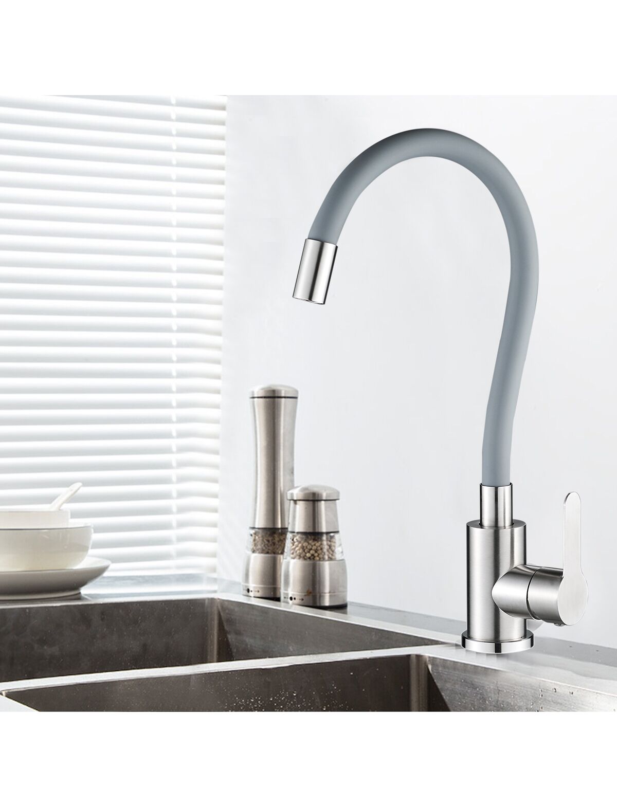 Смеситель для кухни из нержавеющей стали с гибким изливом, серый, EKO, EKO05-141