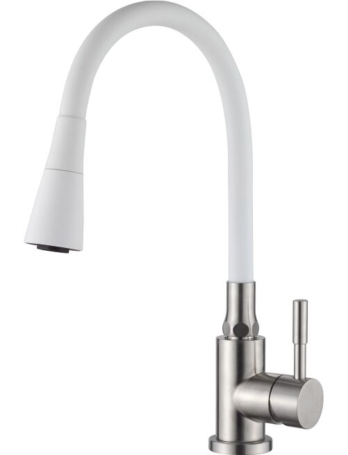 Смеситель для кухни с силиконовым изливом. Цвет белый+нерж.сталь. Ф35. (Комлектуется подводкой для воды)