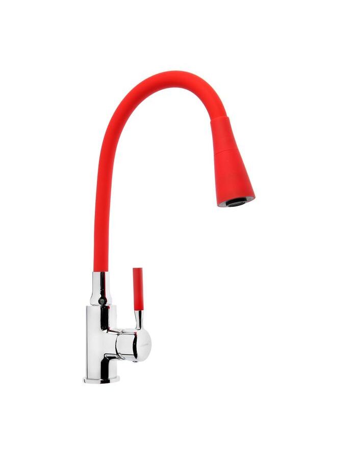 Смеситель для кухни с силиконовым изливом. Цвет красный+хром. Ф35. (Комлектуется подводкой для воды)