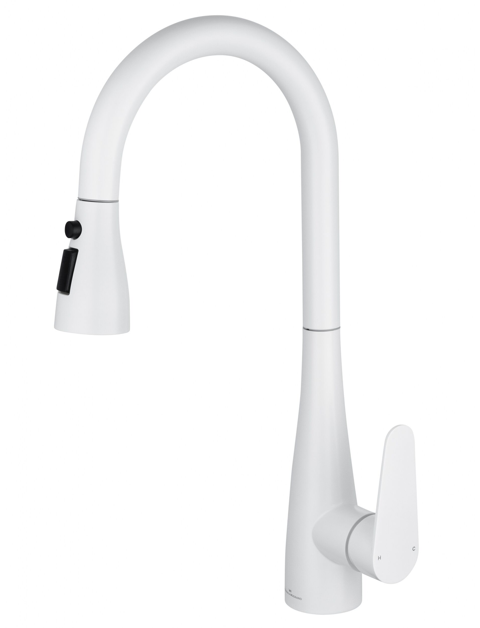 Смеситель для кухни с выдвижным изливом WONZON & WOGHAND, Белый матовый (WW-121E201B-MW)