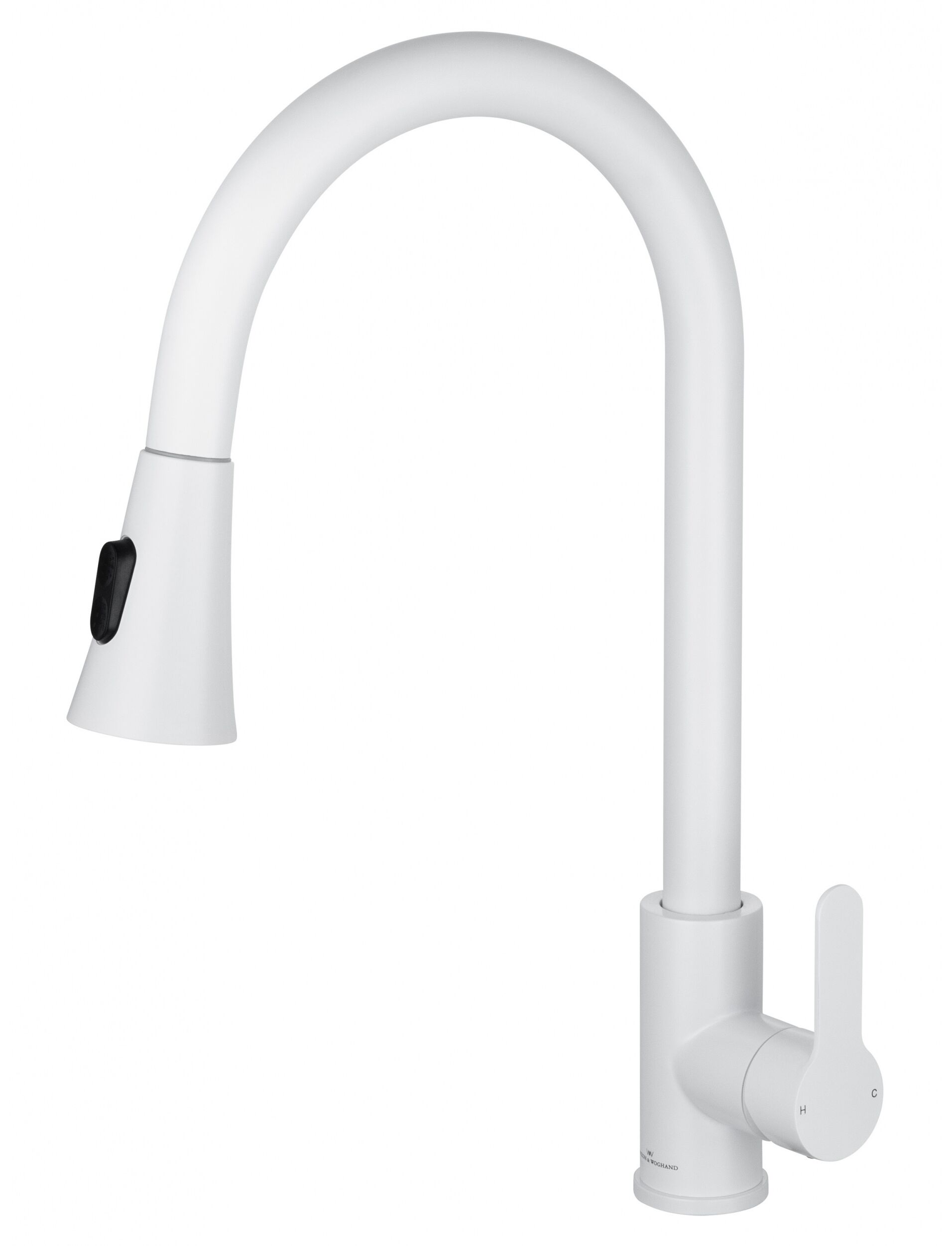 Смеситель для кухни с выдвижным изливом WONZON & WOGHAND, Белый матовый (WW-121E201L-MW)