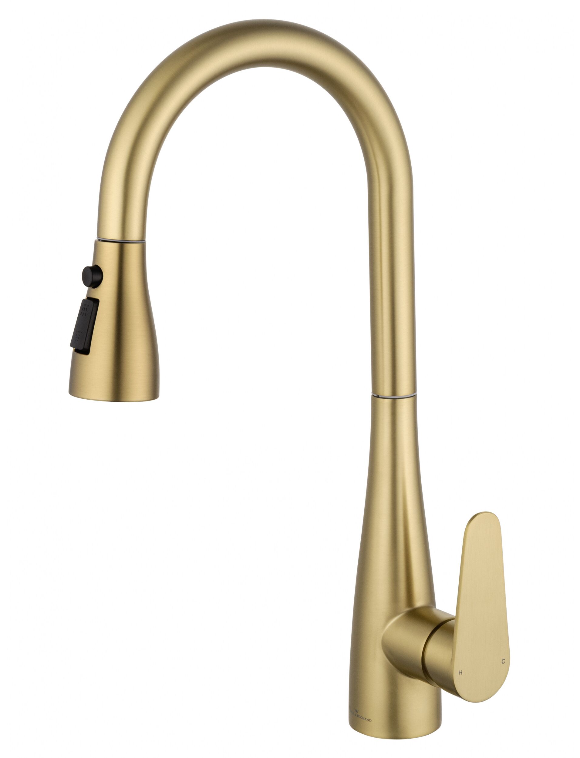 Смеситель для кухни с выдвижным изливом WONZON & WOGHAND, Брашированное золото (WW-121E201B-BG)