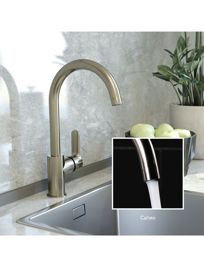 • Цвет смесителя отличается от оттенка стальной сатиновой мойки.