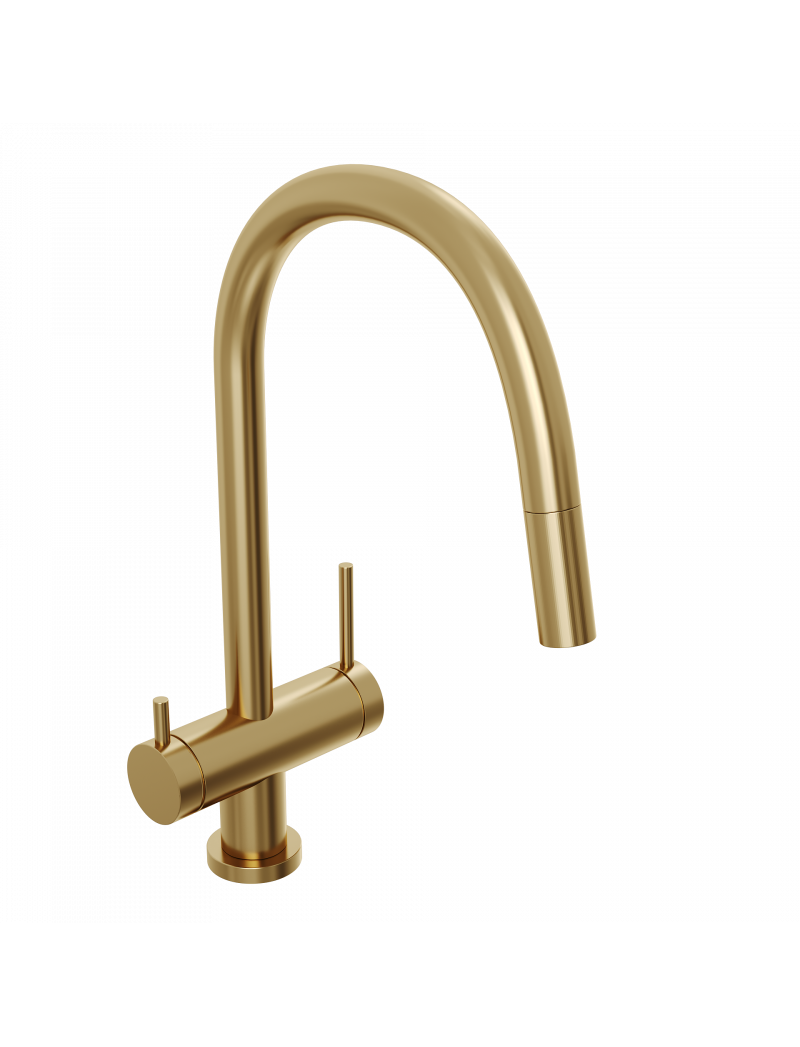 Смеситель для кухни Abelsberg Aera EMF71709BG c вытяжным изливом и возможностью подключения фильтра для воды, цвет королевское золото, PVD покрытие