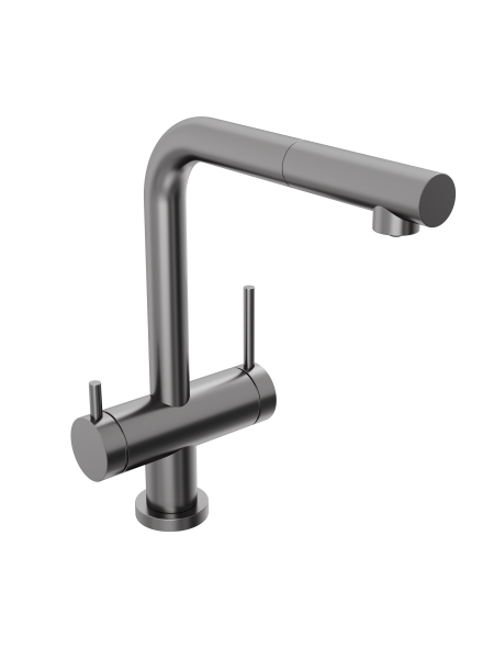 Смеситель для кухни Abelsberg Pura OTF70709GM c вытяжным изливом и возможностью подключения фильтра для воды, цвет космическая сталь, PVD покрытие
