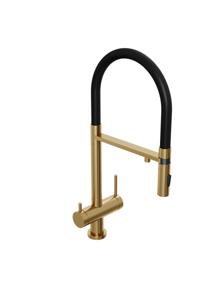 Смеситель для кухни Abelsberg Venta IXF73979BG c гибким изливом и возможностью подключения фильтра для воды, цвет королевское золото, PVD покрытие