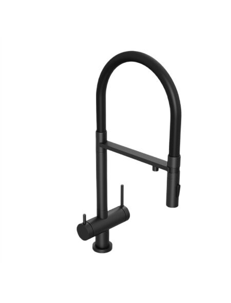 Смеситель для кухни Abelsberg Venta IXF73979MB c гибким изливом и возможностью подключения фильтра для воды, цвет вулканический черный