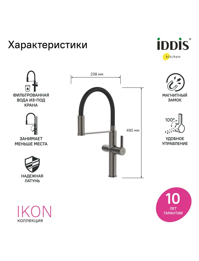 Смеситель для кухни IDDIS Ikon IKNGMFFi05 серый