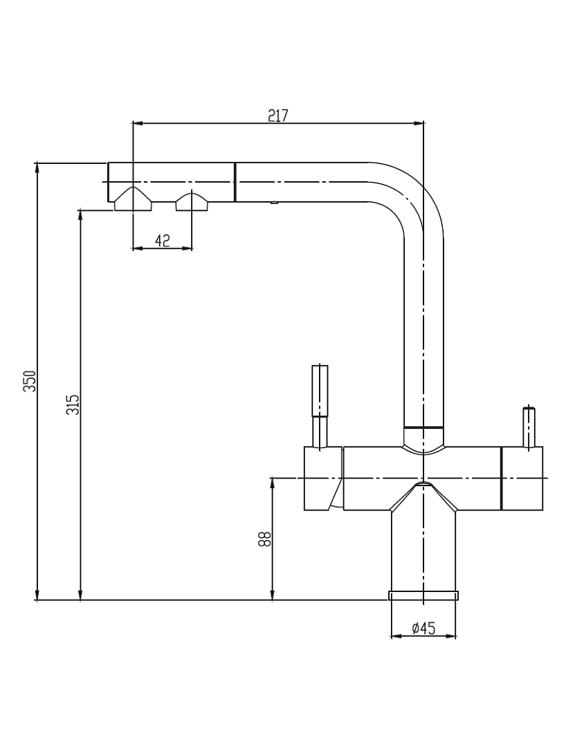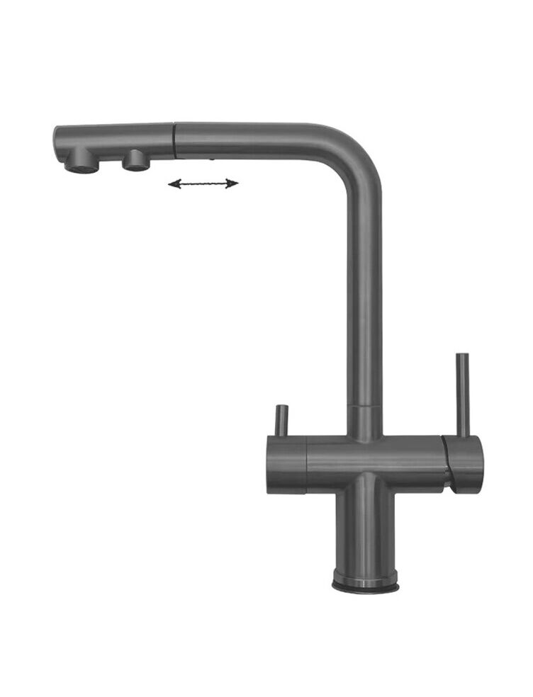 Смеситель для кухни Osgard Balans Plus 36973 с подключением к фильтру и вытяжным изливом, черный матовый