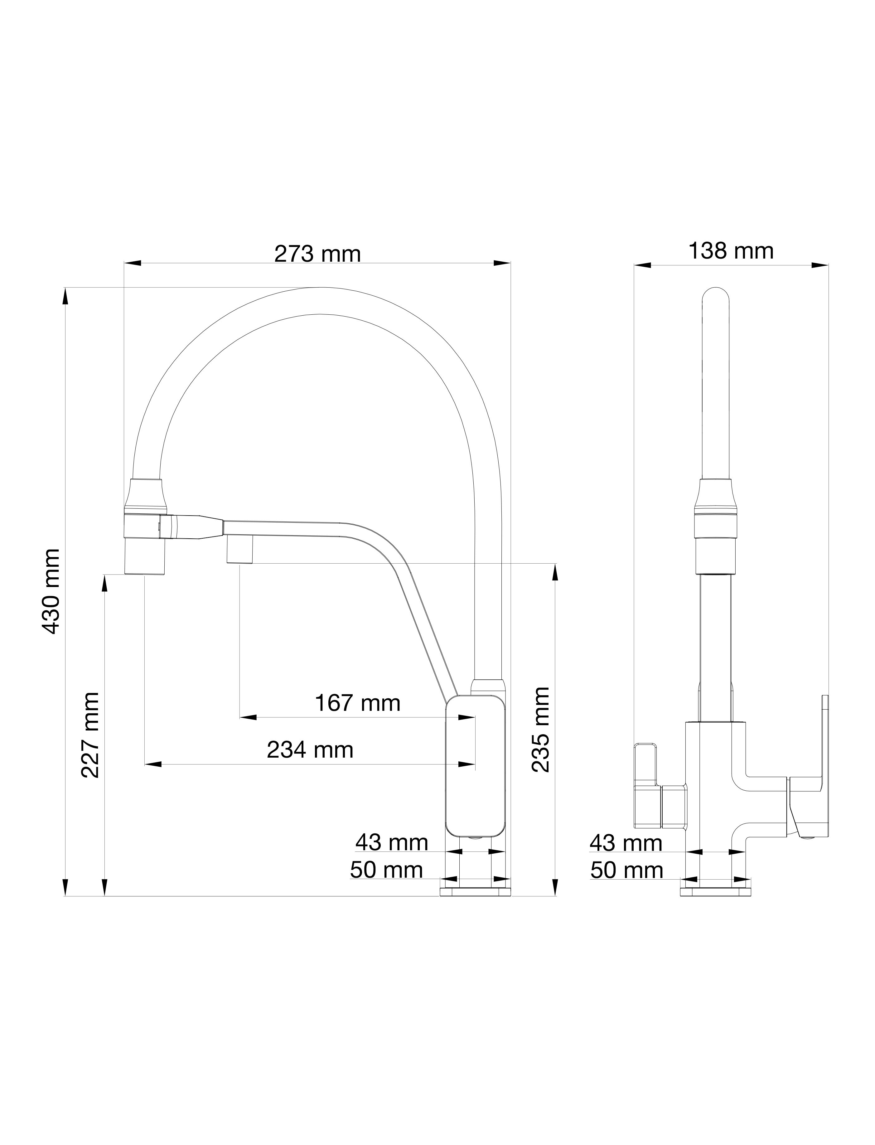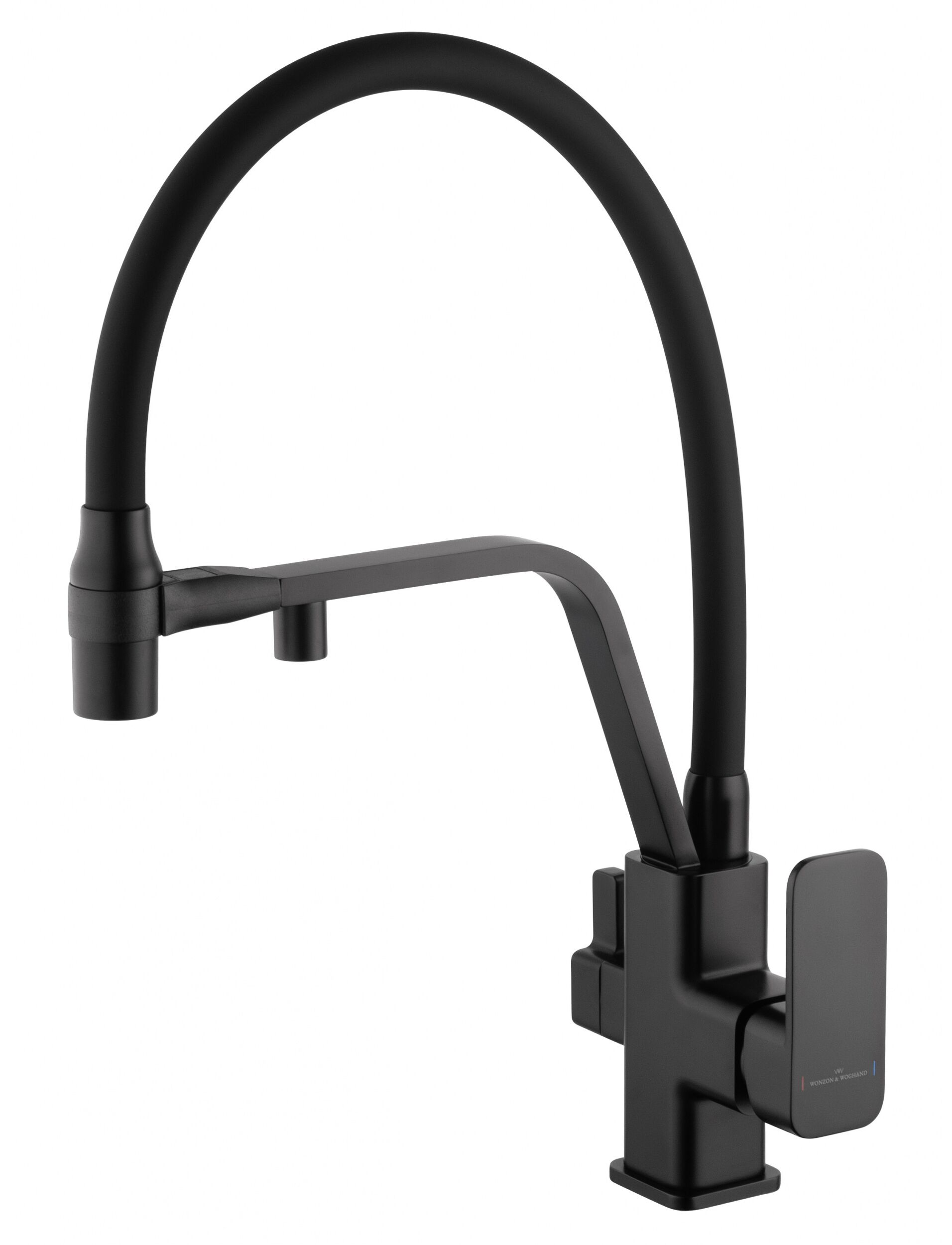 Смеситель для кухни с гибким изливом и подключением фильтра WONZON & WOGHAND, Черный матовый (WW-88458013-MB)