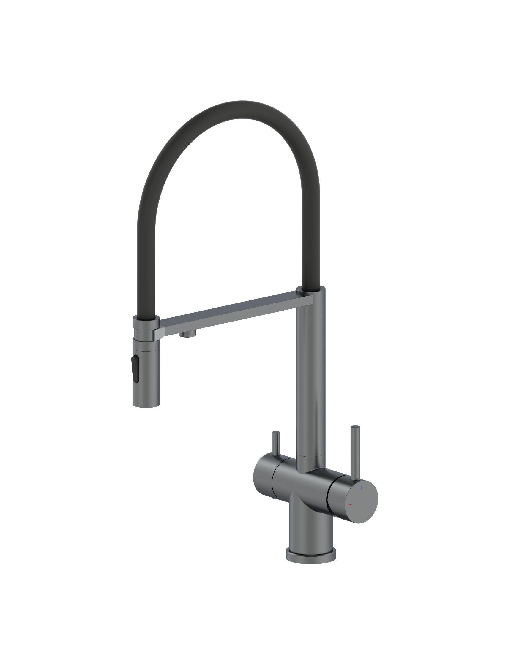 Смеситель для кухни с гибким изливом и подключением фильтра WONZON & WOGHAND, Темный графит (WW-88458009-BGM)