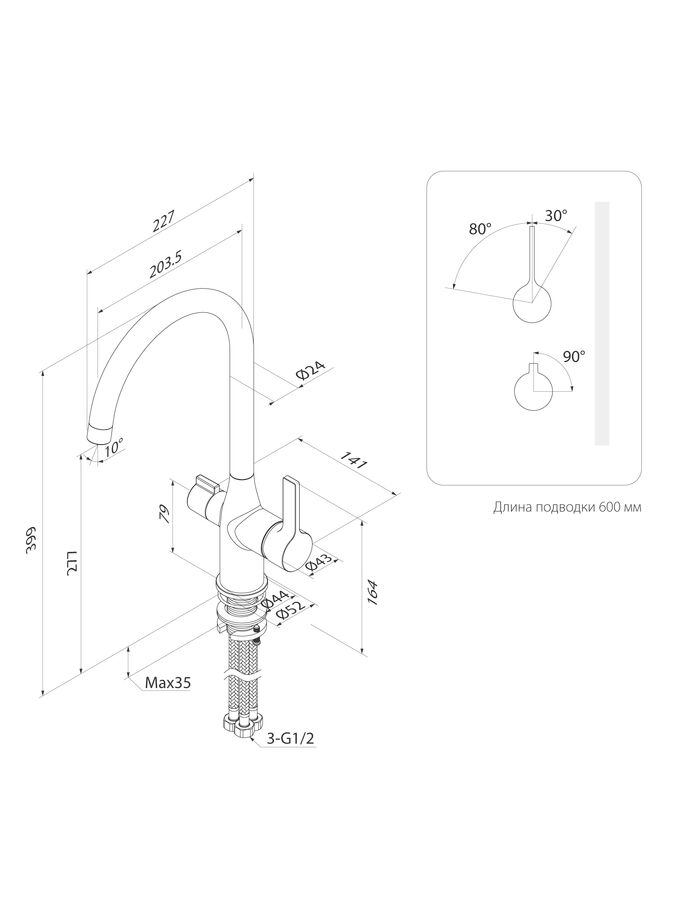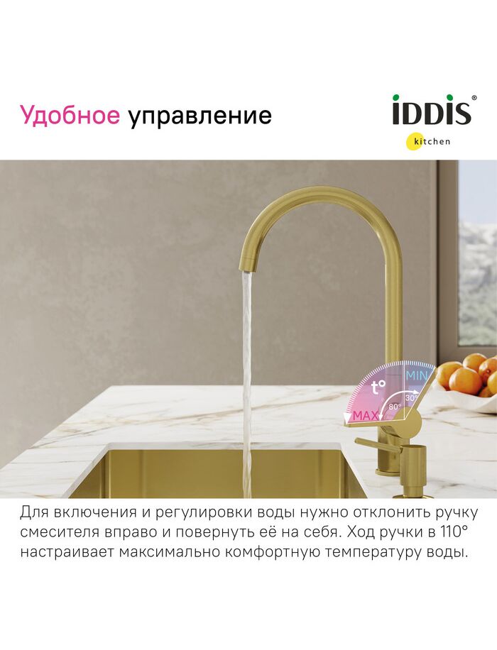 Смеситель для кухни с каналом для фильтрованной воды, матовое золото, Pure, IDDIS, PURMGFJi05