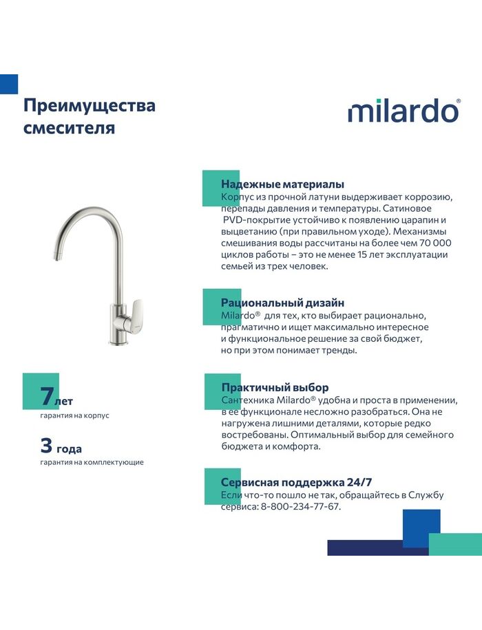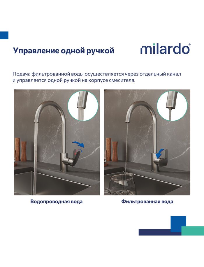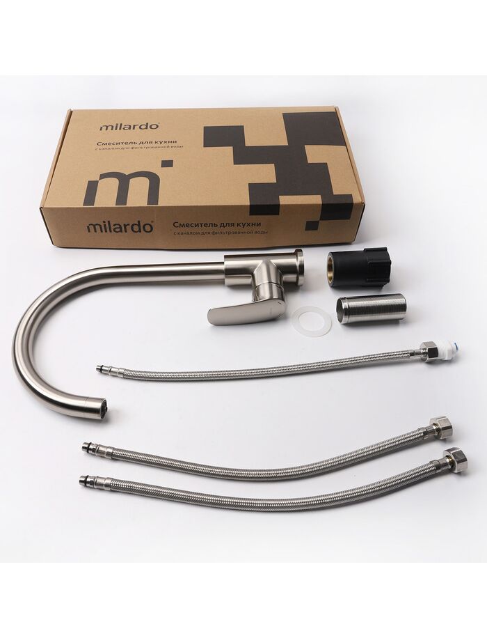 Смеситель для кухни с каналом для фильтрованной воды, сатин, Rora, Milardo, RORBNFJM05