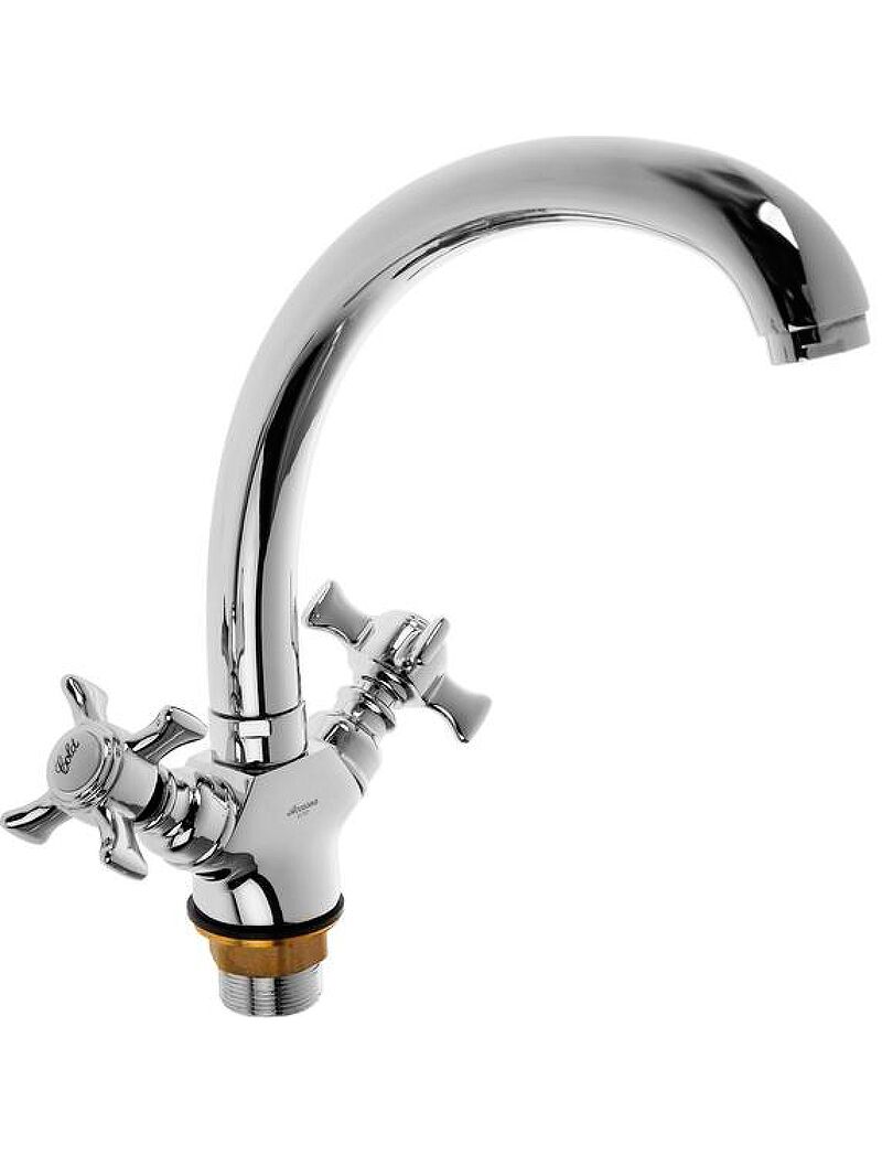 Смеситель для кухни с гайкой, двухрычажный. Сатин