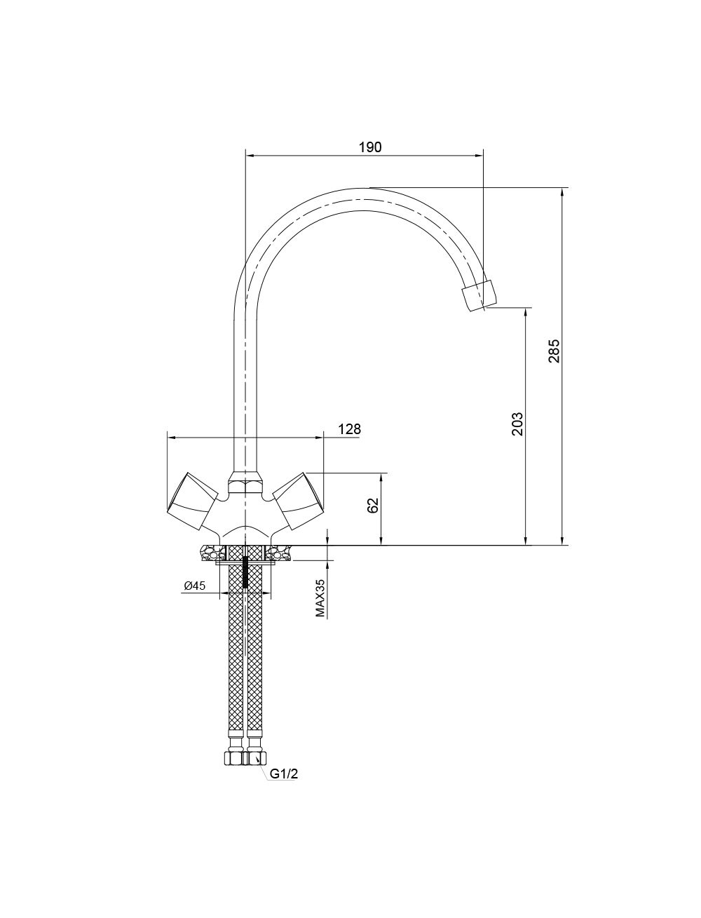 Длина излива мм: