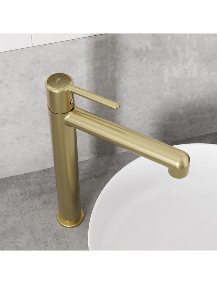Cмеситель для настольного умывальника, золотой матовый, Aiger, IDDIS, AIGMG01i01