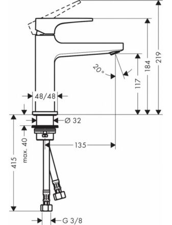HG Metropol, смес. 32507 для рак., 110мм, Push-Open, хром