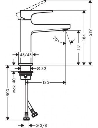 HG Metropol, смес. 32507 для рак., 110мм, Push-Open, мат/черный