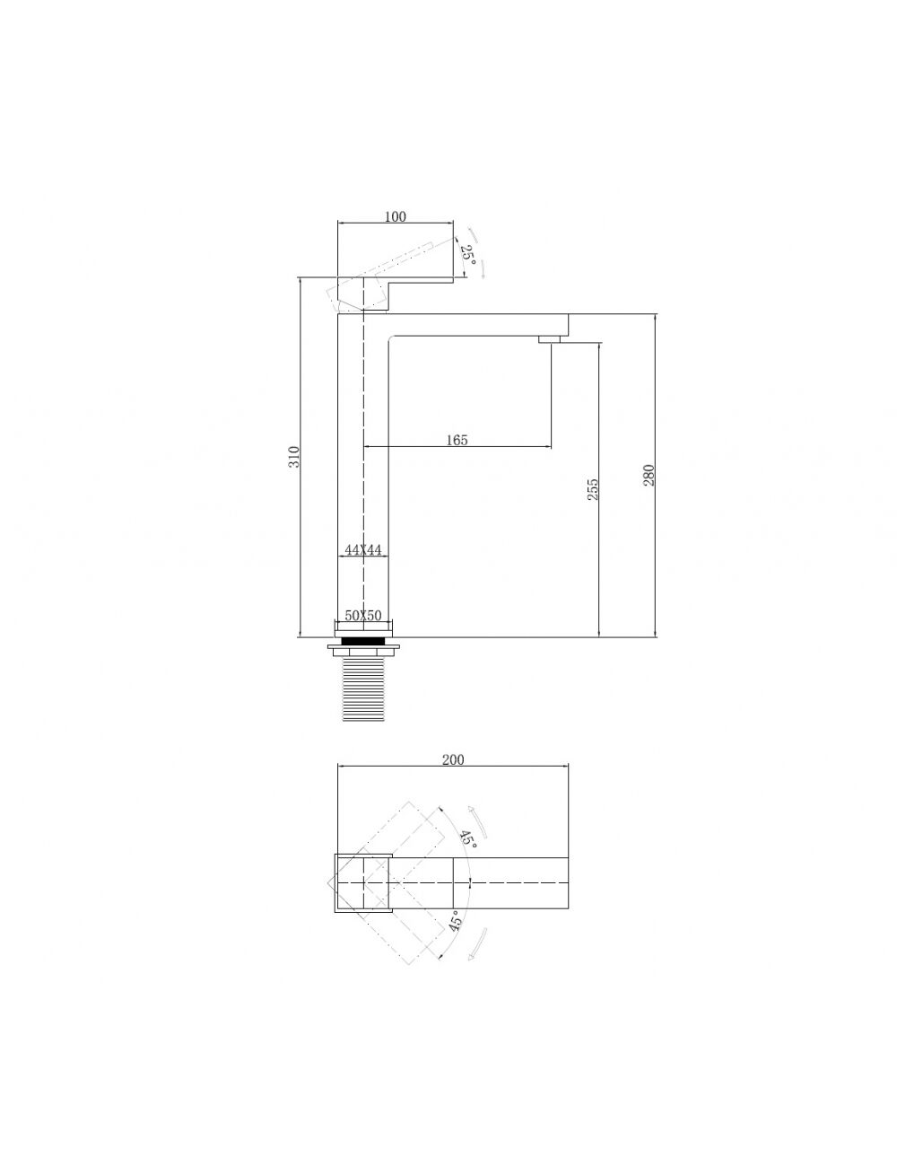 Длина излива мм: